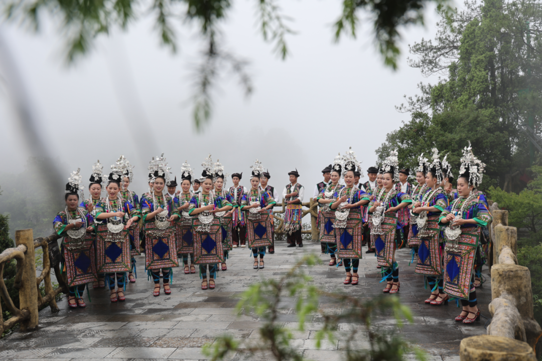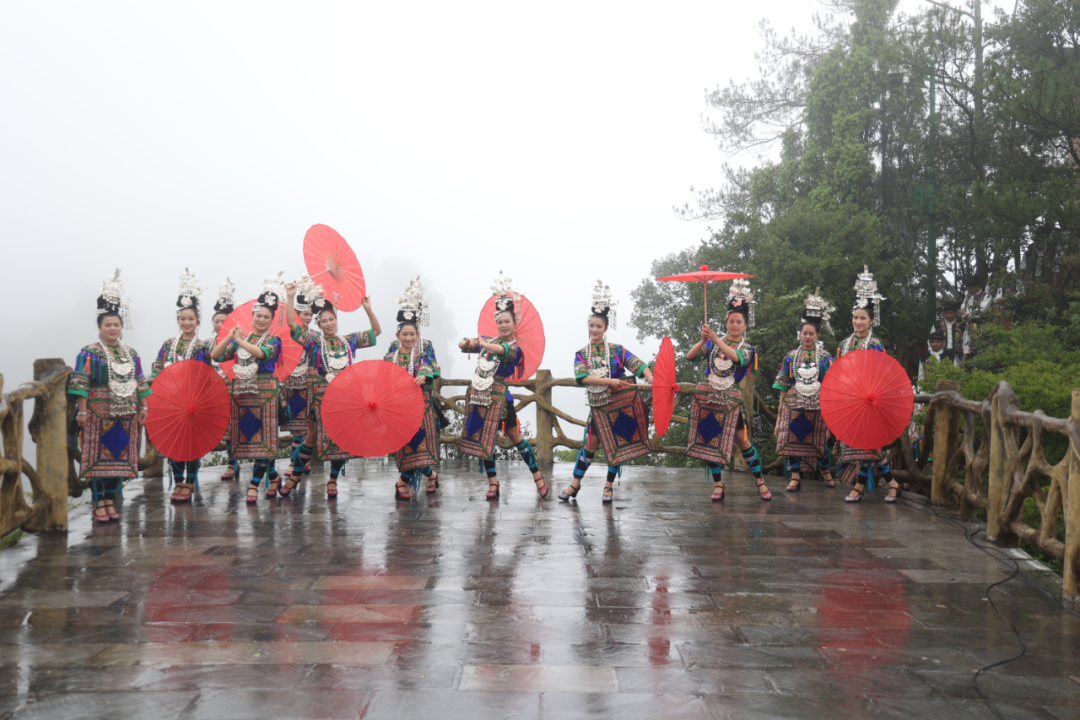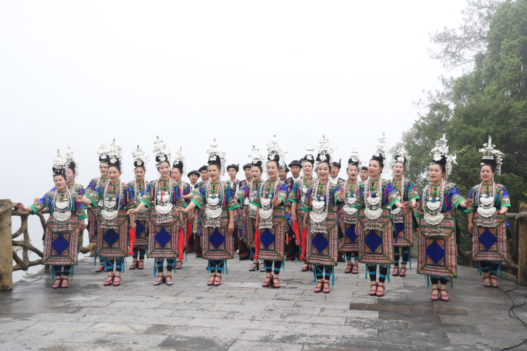 当天上午,在自然遗产地云台山、黑冲苍翠的山峦上,山间云雾缭绕,仿佛仙境一般。来自黎平县的侗族歌手们身着传统侗族服饰,站在云台山的观景台上,以雄浑激昂的歌声,展示了侗族大歌的独特魅力。歌声中,既有对自然遗产美景的赞美,也有对侗族文化的传承与弘扬。