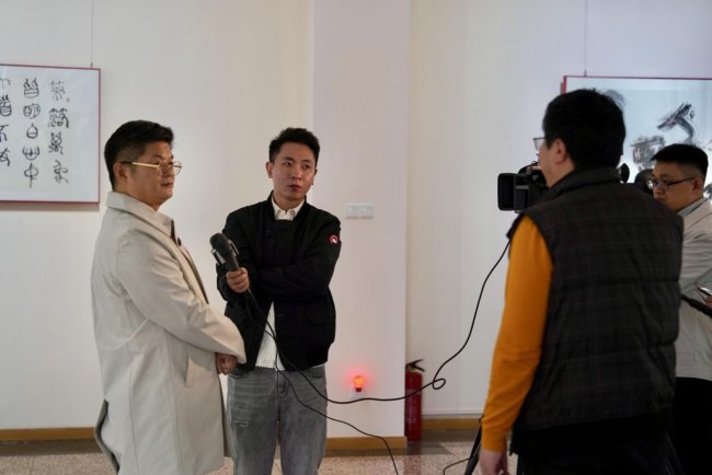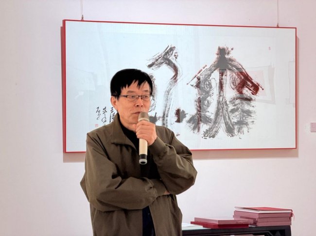 媒体人丁剑表示每次参加王清州展览都有进步,认为其作品展现出年轻人般的进取活力。他特别提到隶书作品兼具古文字的神秘感与趣味,并感受到书写中流畅的‘贯气’与运动感,体现了艺术家在宏观格局中对细节的精准掌控。