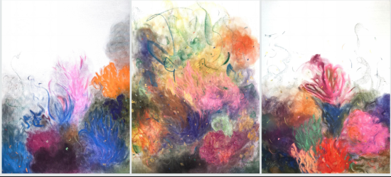 “花外之境”这一题目所指向的,并非花的外部世界,而是花之外、象之外的观看深处。在聂群慧的作品中,图像游移于具象与抽象之间:既保留花的形态暗示,又不断瓦解其确定性,使画面呈现出一种漂浮的状态——它既像记忆的残影,又像意识的回声,在若即若离之间生成独特的视觉张力。