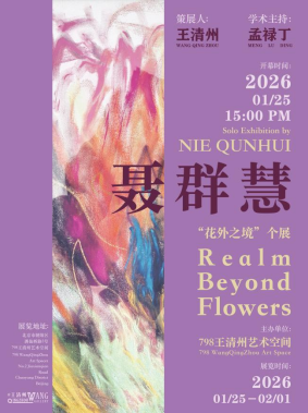 2026年1月25日下午3点,《花外之境——聂群慧个展》在北京798王清州艺术空间正式开幕。本次展览由艺术家聂群慧呈现其最新阶段的创作成果,策展人王清州策划,著名艺术家孟禄丁担任学术主持。开幕式现场嘉宾云集,著名艺术家王轶琼、阿特网总编邵琦等出席并共同见证展览启幕。展览将持续至2026年2月1日。