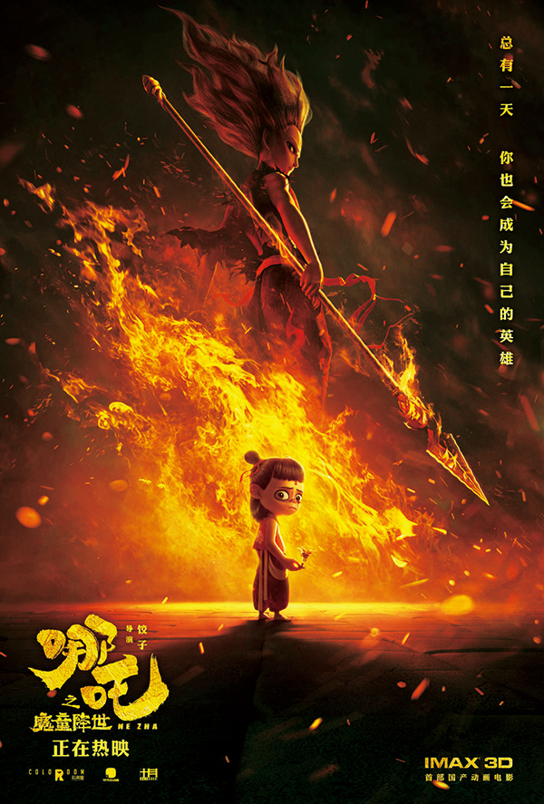电影《哪吒之魔童降世》改编自中国神话,在2019年暑期上映后,创造了国产动画片的票房奇迹,好评如潮。图为电影《哪吒之魔童降世》海报。
