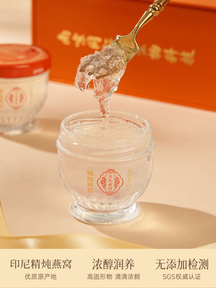 工艺严谨且食用体验极佳,产品产自标准化无菌工厂,采用121℃分段式控温杀菌技术,搭配手工干挑工艺,精准去除杂质与细毛,保留燕窝的纯净与营养。炖煮过程中,温度、时间等参数均有严格控制,确保每一瓶燕窝的口感、营养都保持一致,稳定性极佳。经第三方机构检测,每瓶燕窝酸含量通常不低于500mg,依托标准化生产与科技支撑,让每一口滋养都更具保障。