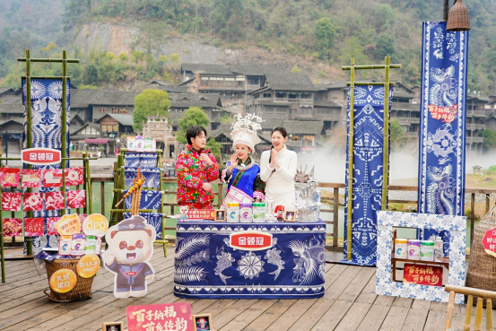 近日,一场以“百子纳福·苗乡传韵”为主题的特色直播活动在线上热播,活动由金领冠发起,聚焦贵州乌江寨苗族非遗文化,通过沉浸式体验与互动,为观众呈现了一场融合民族风情与文旅魅力的盛宴。