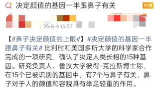 鼻子决定颜值上限”,这句话真不是随便说说。最近一项研究上了热搜——决定颜值的基因一半跟鼻子有关。
