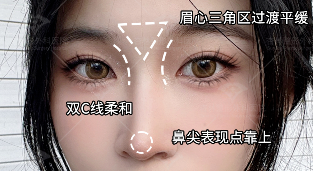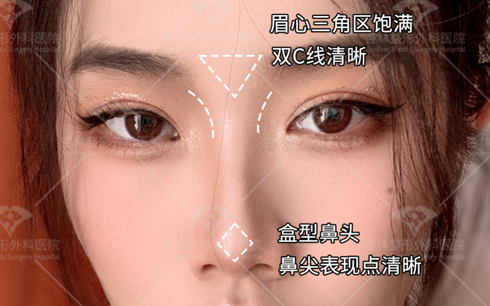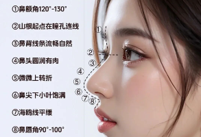 鼻型特点:山根起点适中或偏高,鼻背挺拔、线条清晰利落,鼻尖表现点清晰,微盒型鼻头,鼻基底饱满。