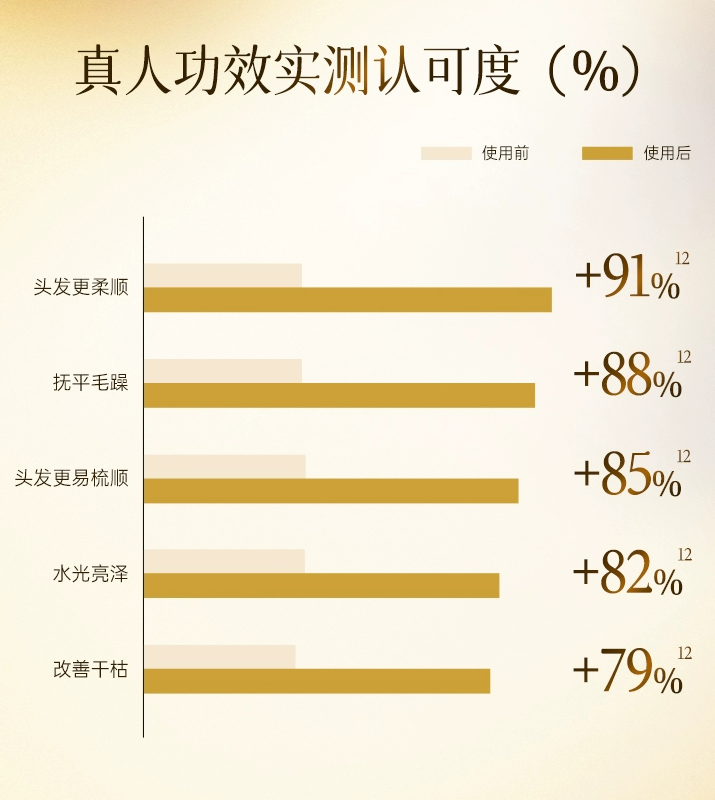 产品搭载修护、保湿、柔顺三效合一技术与双芯修护科技,配合微分子释缓渗透技术,实现免蒸沙龙级修护效果,3分钟即可完成深层滋养,无需额外加热,居家就能享受院线级护发体验。实验室1800例临床测试显示,产品烫染后毛躁改善率超90%,28天分叉断发减少85%,60天发丝强韧度提升83%,能深入发芯填补烫染导致的毛鳞片空洞,显著提升发丝顺滑度、蓬松度、光泽度。